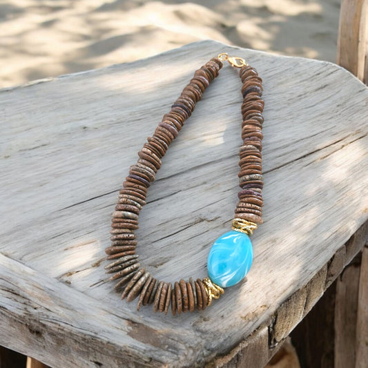 Tamaño: 18" Material: turquesa marrón y resina Confección: Bisutería -